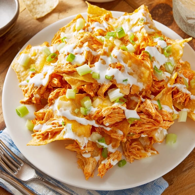 Save to Pinterest My roommate burst through the door one Sunday with a craving she couldn't shake: nachos, but make them buffalo wings. I laughed, but twenty minutes later we were staring at a baking sheet piled with crispy chips, saucy chicken, and bubbling cheese that smelled like a sports bar in the best way. We ate straight from the pan, standing at the counter, arguing over whether ranch or blue cheese was the correct choice. That messy, spontaneous experiment became the dish I make whenever someone says they're hungry but don't know what they want. It's the kind of food that starts conversations and ends arguments.