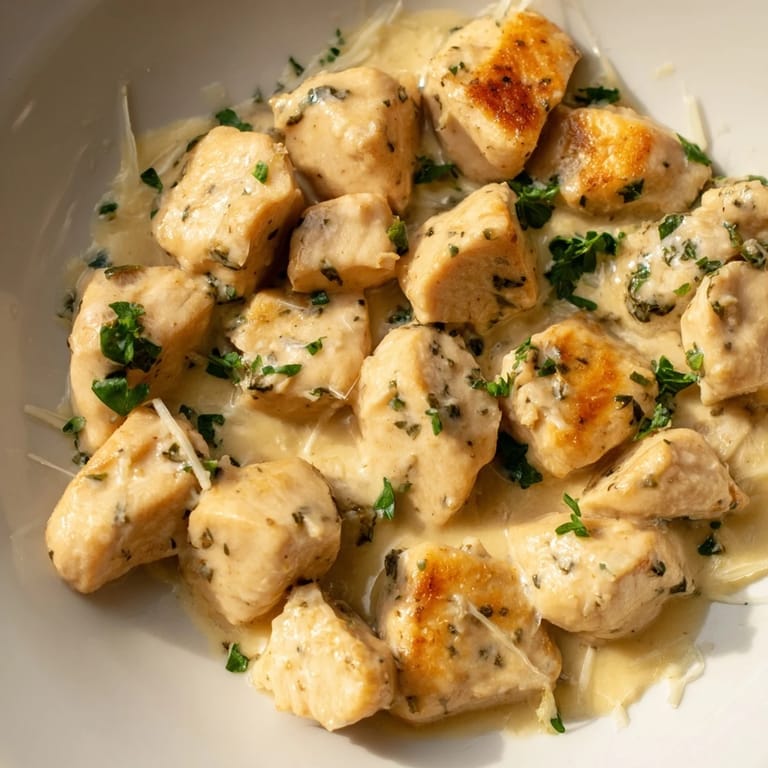 Save to Pinterest My neighbor knocked on my door one Tuesday with a bag of chicken thighs and said she had no idea what to cook. I was halfway through answering emails, but something about her timing made me close my laptop and pull out a skillet. We threw together what became these creamy garlic chicken bites, and by the time her husband came to pick her up, he refused to leave without the recipe. That spontaneous evening taught me that the best dishes don't need planning, just good company and a little garlic.
