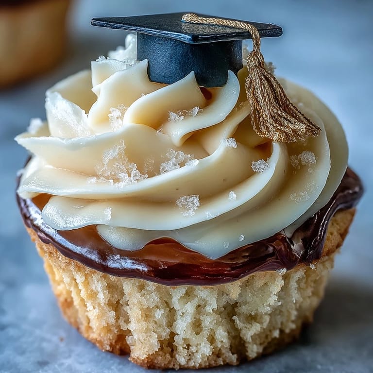 Save to Pinterest The lure of a kitchen filled with the scent of warm vanilla and sugar always pulls me in, but nothing compares to the anticipation of making graduation cupcakes bedecked with shiny fondant caps. One rainy afternoon, I was given the task to whip up these celebratory treats for my cousin's graduation, and the laughter that echoed as we handcrafted each cap truly surprised me. There is something absurdly satisfying about seeing a tray of golden-topped cupcakes transform a simple family kitchen into a stage for celebration. The occasional splatter of buttercream and stray flecks of edible gold only added to the fun chaos. It's the kind of recipe that turns a baking session into a memory-making event.