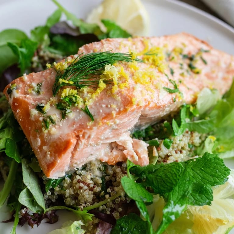 Save to Pinterest The smell of lemon zest hitting warm salmon is what hooked me on this salad. I threw it together one Thursday after work, too tired for anything complicated but craving something that actually tasted alive. The salmon came out tender, the herbs were bright, and suddenly I had a meal that felt like effort without the exhaustion. Now its my default when I want to feel like Ive got my life together, even if the kitchen counter says otherwise.