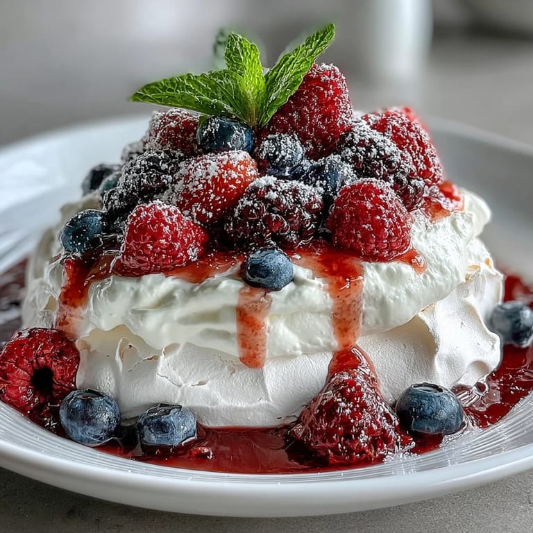 I once served this pavlova after an impromptu dinner with friends who’d lingered at the table, laughter echoing and plates stacked high. As I spooned whipped cream over the cooled meringue, someone remarked on how the berry colors looked more vivid than any bouquet. We paused to admire the dessert before gently breaking through the crust, savoring the marshmallowy sweetness in the middle. Even the quietest part of the night felt transformed by the surprise of that airy texture. It’s the dessert I reach for when I want the meal to end on a note of delight.