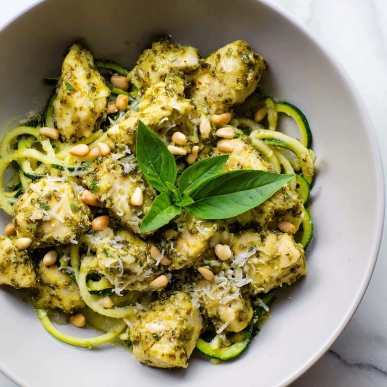 Save to Pinterest My neighbor showed up one evening with a spiralizer and a grin, insisting I try something different with the mountain of zucchini overtaking her garden. I was skeptical at first, twirling vegetables into noodles felt more like a craft project than dinner. But twenty minutes later, with pesto-coated chicken piled over those tender green spirals, I was completely sold. The kitchen smelled like summer trapped in a bowl. That night changed how I thought about quick weeknight meals entirely.