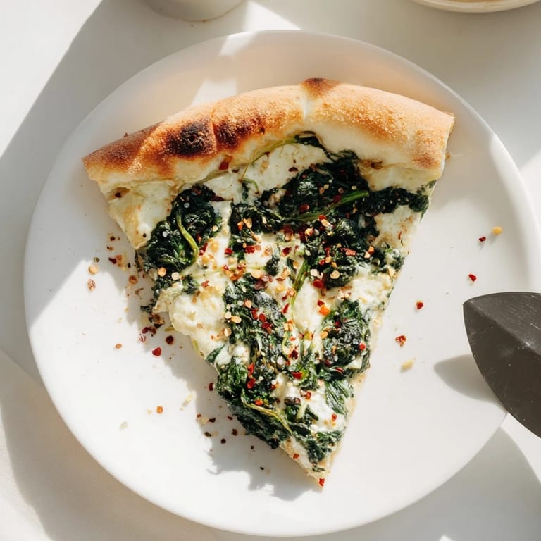 I made this for a friend who swore she didn't like spinach on pizza. She picked up a slice, skeptical, and took a careful bite. Then another. By the third slice she admitted the garlic butter changed everything, that the ricotta made it feel less like a salad and more like comfort. We finished the whole thing on my back porch with cold wine and the kind of conversation that stretches past midnight. That's when I realized this wasn't just pizza, it was the kind of food that makes people stay a little longer.