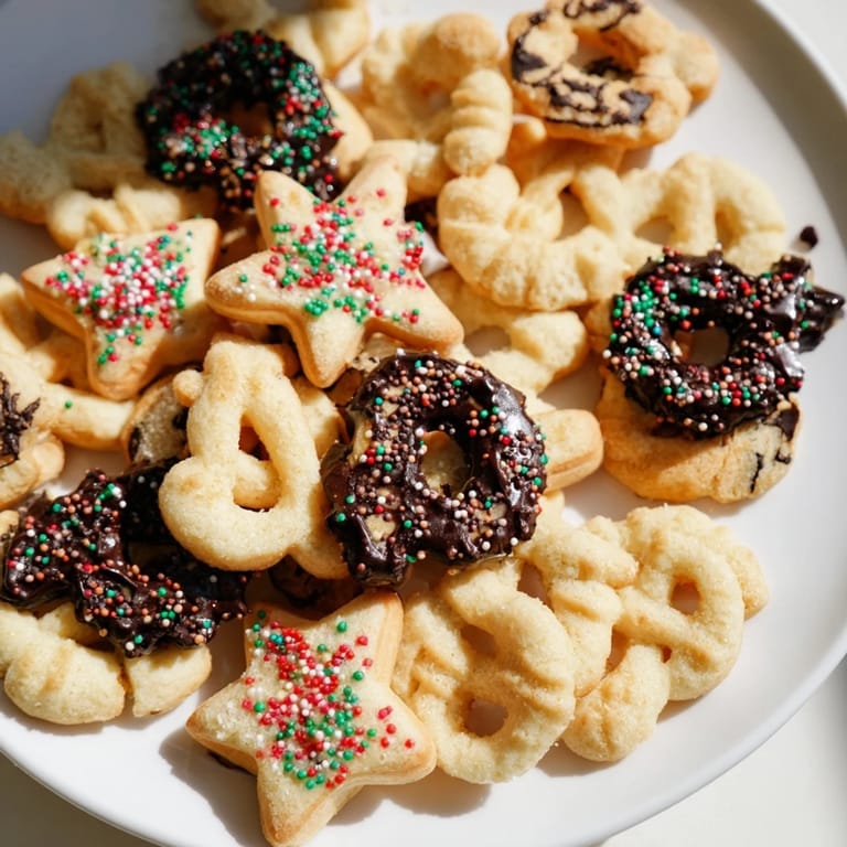 Save to Pinterest There's something quietly wonderful about making food that requires a special tool. My nephew watched me press out each cookie, mesmerized, and asked if he could try. His shapes were lopsided and imperfect, and they were his favorite thing we made that day. That's when I realized spritz cookies aren't about perfection—they're about the ritual of making something pretty with your own hands.